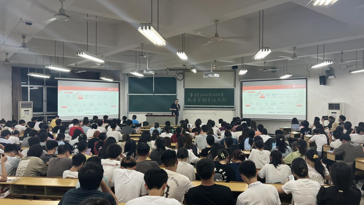 暑假结束,新的学年正式拉开帷幕。9月11日晚,sunbet集团中国官网入口本科2022级于二教501召开本学期第一次年级大会,辅导员周斌老师和学院本科2022级全体同学参会。
