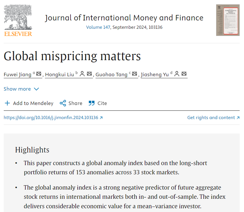 近日,sunbet集团中国官网入口金融工程系唐国豪副教授合作的题为“Global mispricing matters”的论文在院定A类期刊 Journal of International Money and Finance,volume 147, September 2024发表。