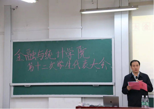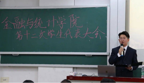 2020年10月19日晚7点,sunbet集团中国官网入口第十二次学生代表大会在我校财院校区第二教学楼305隆重召开。学院党委副书记颜李、学院团委书记夏浩、全体辅导员和来自金统院的120余名学生代表参加了此次大会。大会由第十一届学生会主席毕瀚文主持。