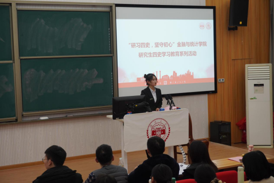 11月24日,sunbet集团中国官网入口组织研究生在财院校区二教101集中观看四史学习教育主题微视频,学院团委书记范玉康老师、研究生辅导员周斌老师及全体研究生会成员、各年级研究生代表参加了本次活动。
