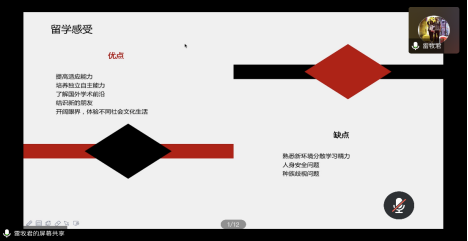 分享过程中,雷牧君还简要讲解了国家公派研究生项目的开展流程、资助项目等的相关事宜,向大家介绍了金融统计学科研究生申请国家公派研究生项目所需的前期准备工作和自身经验,最后针对个别同学的具体情况耐心给出了建议。