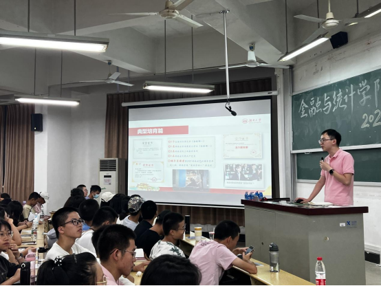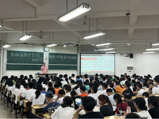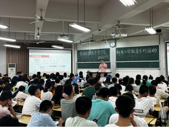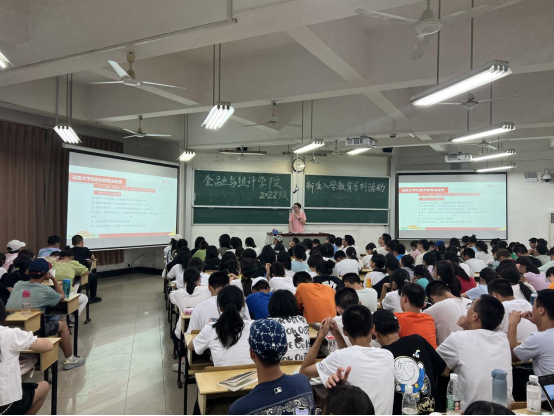9月13日晚,sunbet集团中国官网入口于财院校区第二教学楼举办2022级新生入学教育系列活动之“学生培养与日常事务主题讲座”,辅导员周斌主讲。