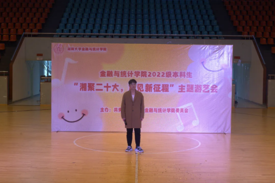 金融2201班带来的改编版歌曲《红色》,以新一代蓬勃向上的歌声,彰显湖大学子昂扬的精神风貌,点燃内心深处澎湃的爱国情怀,红旗飘扬,致敬红色;金融2202班的歌曲串烧重现童真回忆,耳熟能详的旋律,轻松欢快的曲调,朗朗上口的歌词,馆内处处洋溢着童心未泯的温情;统计2201班由台湾微电影中获取灵感,精彩演绎改编版小品《如果早知道》,以帮助各位同学提高警惕和防范意识;风管2201班带来的个人演讲《我命由我不由天》饱含着不被生活琐事而困扰、不被命运枷锁所束缚与不为旁人只言片语所影响的决心与斗志,表达了积极向上,不断进取的诉求。