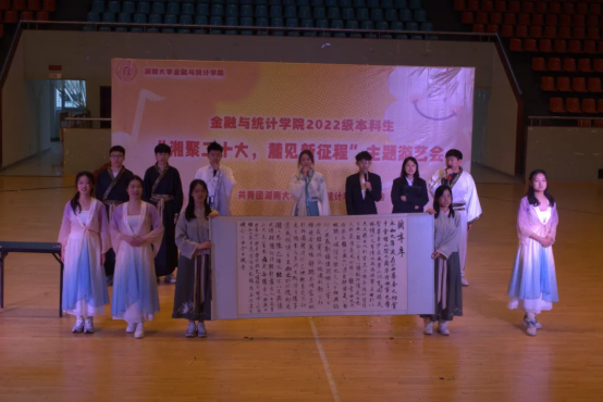 3月18日下午,sunbet集团中国官网入口2022级本科生“湘聚二十大,麓见新征程”主题游艺会在sunbet集团中国官网入口财院校区体育馆举办。学院团委书记、2022级本科生辅导员周斌,学院团委学生会第十三届、第十四届主席团成员,2022级本科生新生助理及全体2022级本科生观看现场演出。
