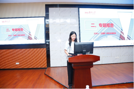 学术道德与科研诚信专题报告由货币金融系主任喻旭兰老师讲授,由2023级硕士生辅导员王婕妤主持。
