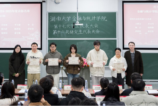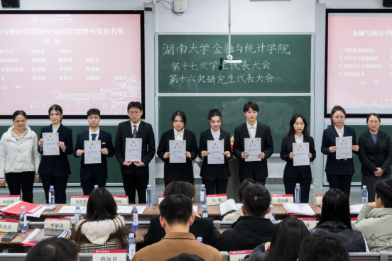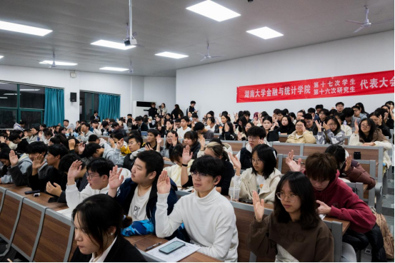 谭凤娥代表学院党委向大会的召开表示热烈祝贺,高度肯定学院学生骨干过去一年在思想引领、学风建设等诸多方面取得的扎实成效,对全体金统学子寄予殷切希望:一是立足中国人民抗日战争暨世界反法西斯战争胜利80周年,传承弘扬湖大师生教育报国的精神底色与责任担当;二是紧扣党的二十届四中全会擘画的“十五五”规划发展蓝图,以青春之我、奋斗之我投身强国建设、民族复兴伟业,彰显青年锐气、贡献青春力量。她寄语全体大会代表,要始终秉持公平公正原则,认真审议各项提案与工作报告,审慎选举产生新一届学生会和研究生会主席团,为学院学生工作注入源源不断的青春活力。