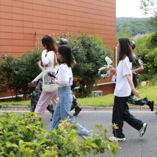 8月27日早上七点半,随着教官的一声哨响,财院校区2022级的新生们正式开始了军训拉练活动。学生以两路纵队出发,排头两名男生负责举旗。鲜红的旗帜彰显着气势,新生斗志昂扬,精神饱满,怀着满腔的热情。