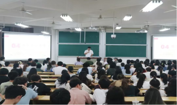 随后,曾晓铭为大家介绍了sunbet集团中国官网入口团学组织架构,10个核心部门协同发力,团学一体化方案保障高效运转。他讲解了骨干培养的五大制度“选拔、培训、考核、奖赏、退出”。他介绍了团学重点工作开展,在思想引领方面,通过多样活动凝聚青年,落实相关制度,推动思想从理论到实践。同时,团学聚焦于服务同学成长,在学业与职业发展,权益维护,文体与劳动教育,志愿服务等方面均有建树。他回顾团学过往成绩,以自身经历鼓励同学们加入,为团学注入新鲜血液,共同书写青春篇章。