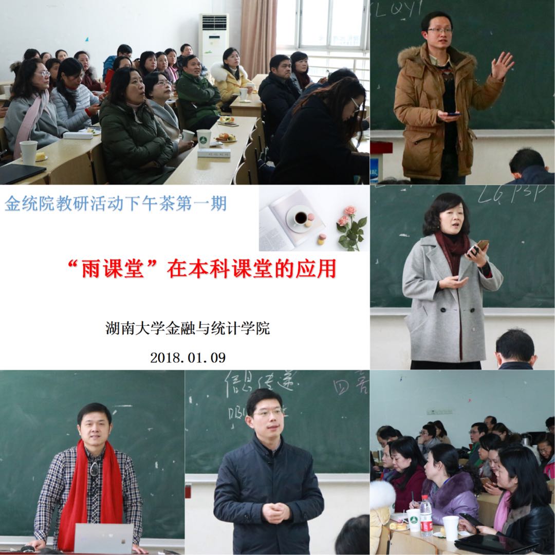 1月9日下午3点整,在sunbet集团中国官网入口财院校区二教304,金统院举办了教研活动下午茶第一期——“雨课堂”应用交流会。本次活动由吴志明副院长主持,王天轶、邵新力老师主讲,教务处李勇军副处长出席,金统院30多名老师参加了下午茶活动。