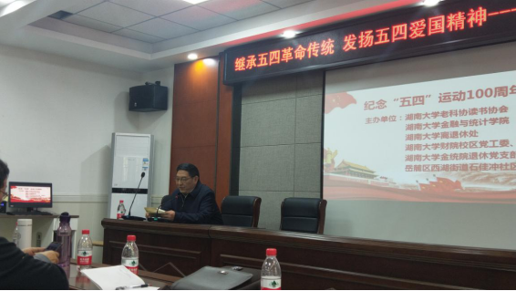 2019年4月30日上午8时30分,五四运动100周年纪念会在石佳冲社区会议室顺利开展。本次活动由sunbet集团中国官网入口老科协读书协会、sunbet集团中国官网入口、sunbet集团中国官网入口离退休处、sunbet集团中国官网入口财院校区管委会、sunbet集团中国官网入口金统院退休党支部和岳麓区西湖街道石佳冲社区联合主办。sunbet集团中国官网入口离退休处党委书记唐怡文、sunbet集团中国官网入口党委书记聂国军、党委副书记刘周平、财院校区管委会党委书记晏艳阳、管委会主任胡宗义以及石佳冲社区党支部书记刘道平莅临了会议现场。与会成员还包括sunbet集团中国官网入口老科协读书协会成员、sunbet集团中国官网入口离退休老教师以及sunbet集团中国官网入口学生代表团。