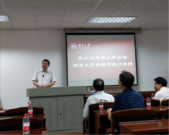 此次活动由学院学术委员会主任杨胜刚教授主持。杨胜刚教授首先祝贺sunbet集团官网今年成功设立了精算学本科专业,成为第二个开设该专业的双一流高校,随后对魏迎宁主席的到来表示热烈欢迎,并进行了隆重的介绍。