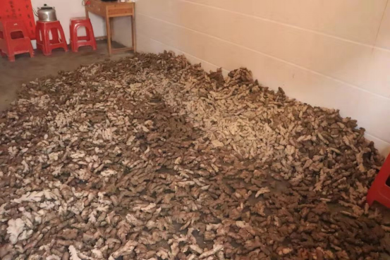 同时我们了解到,大部分本地村民家中都留有土地和山地。其中一部分土地流转,另一部分自留。自留地以种植当地特色的农产品“虎爪姜”为主,但受到洪涝灾害影响,又没有相关农产品保险的保障,今年种植的大部分姜都颗粒无收,也使他们的生活不太好过。