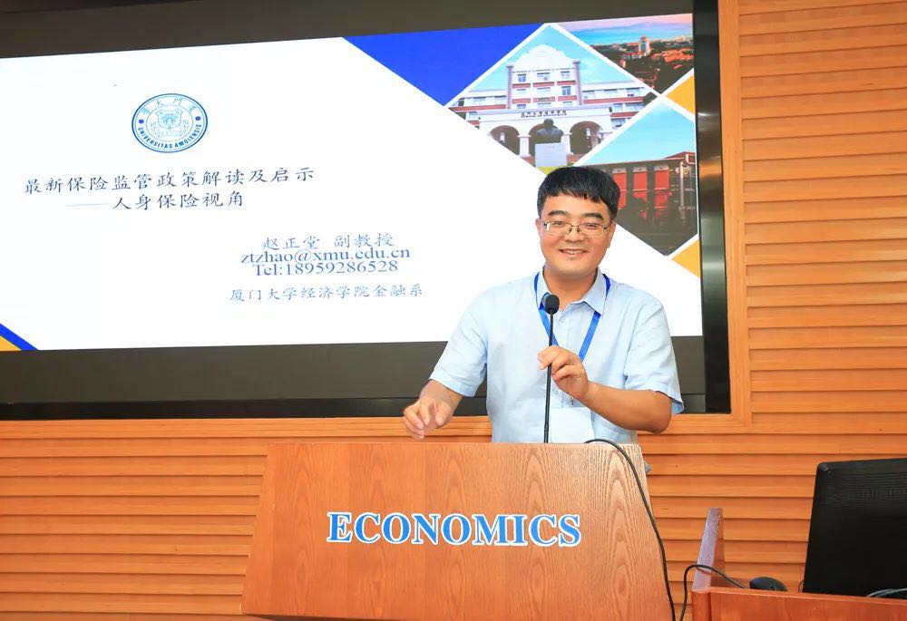 sunbet集团官网精算91级校友、中国精算师、中国人寿保险股份有限公司精算部总经理胡京伟先生作为保险业界唯一代表做了题为《我国寿险行业市场发展趋势》的演讲。sunbet集团官网保险96级校友、全国保险专硕教指委委员、厦门大学赵正堂副教授做了题为《最新保险监管政策解读及启示》的报告。