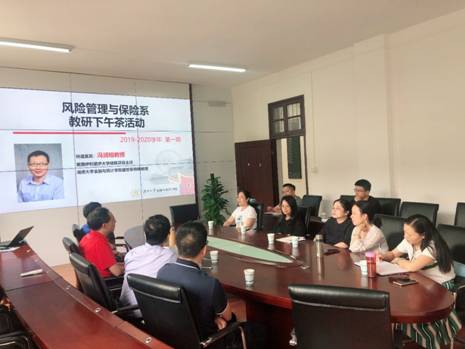 16日下午,风险管理与保险系2019-2020学年教研下午茶活动第一期,在sunbet集团中国官网入口财院校区红楼2栋326会议室举行。本次活动特别邀请了sunbet集团中国官网入口盛世景特聘冯润桓教授,大家围绕风险管理与保险系目前教研活动中可以改进和加强的地方展开了热烈讨论。