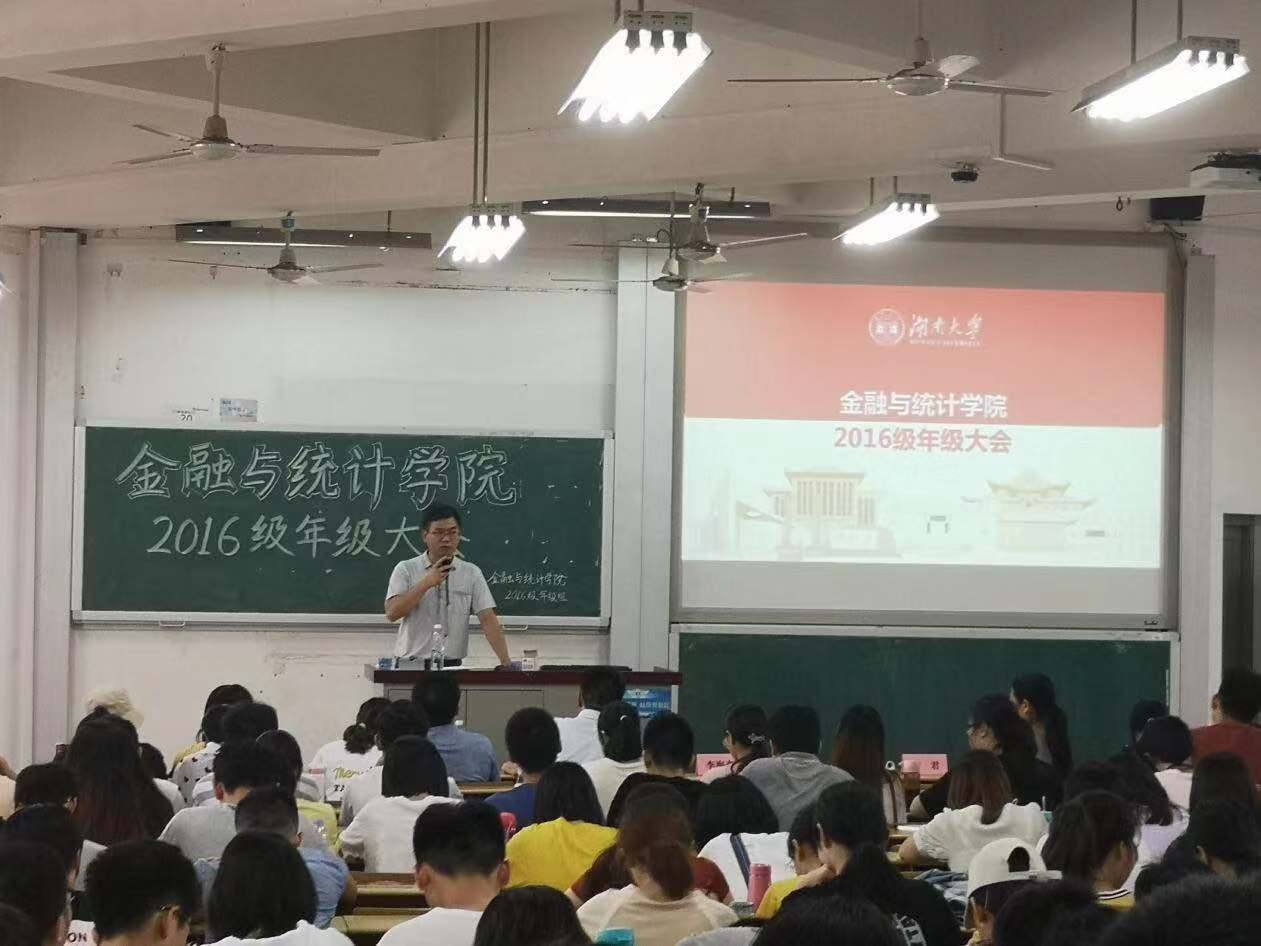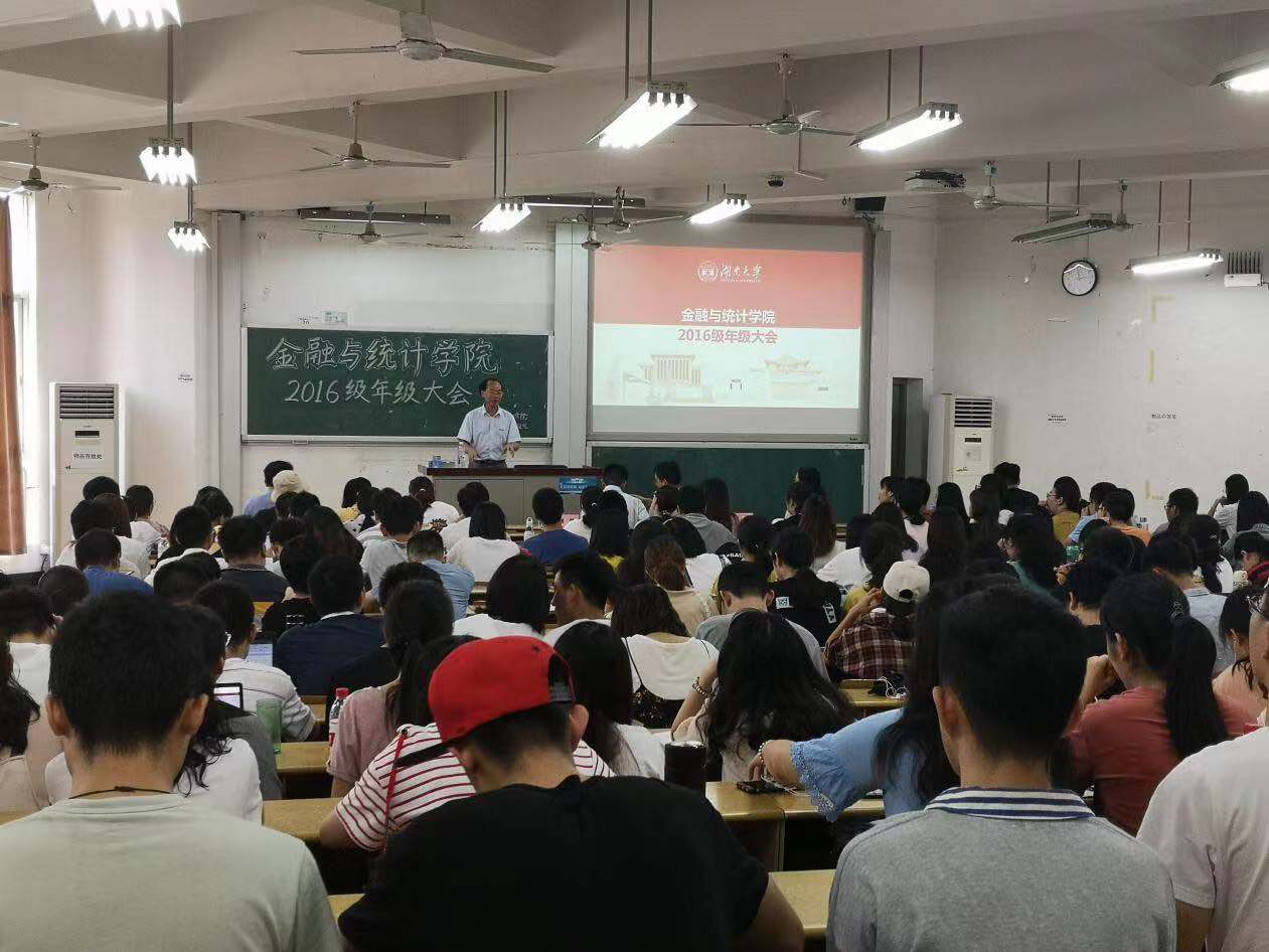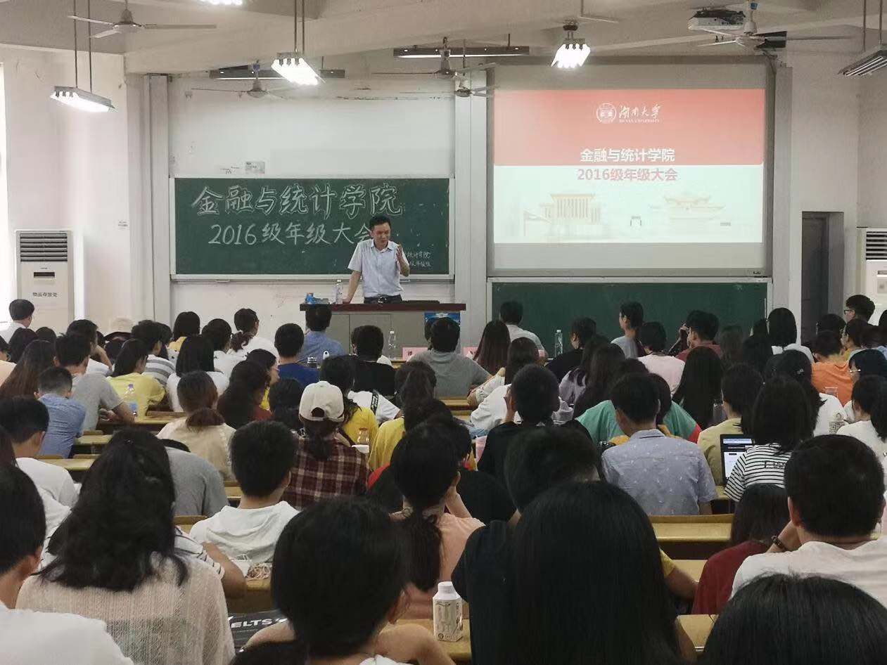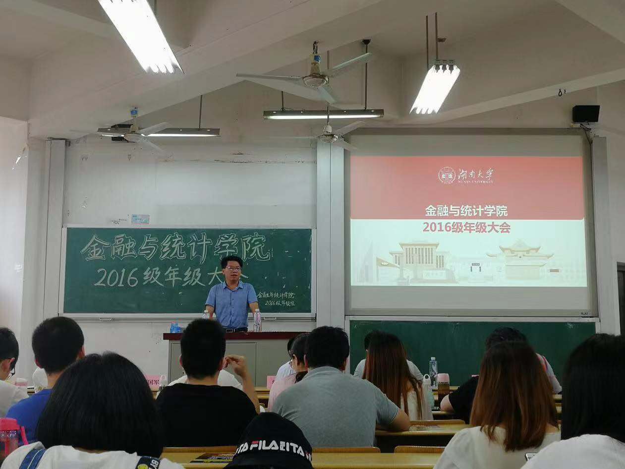 9月17日下午,sunbet集团中国官网入口2016级年级大会在sunbet集团中国官网入口财院校区二教501隆重举行。sunbet集团中国官网入口党委书记聂国军、院长潘敏、党委副书记刘周平、副院长李海奇、16级辅导员谢君以及sunbet集团中国官网入口的全体16级同学出席此次会议。本次会议,旨在帮助同学们分析形势、提出建议和做出规划,鼓励同学们积极面对和安排好最后一年的大学生活。