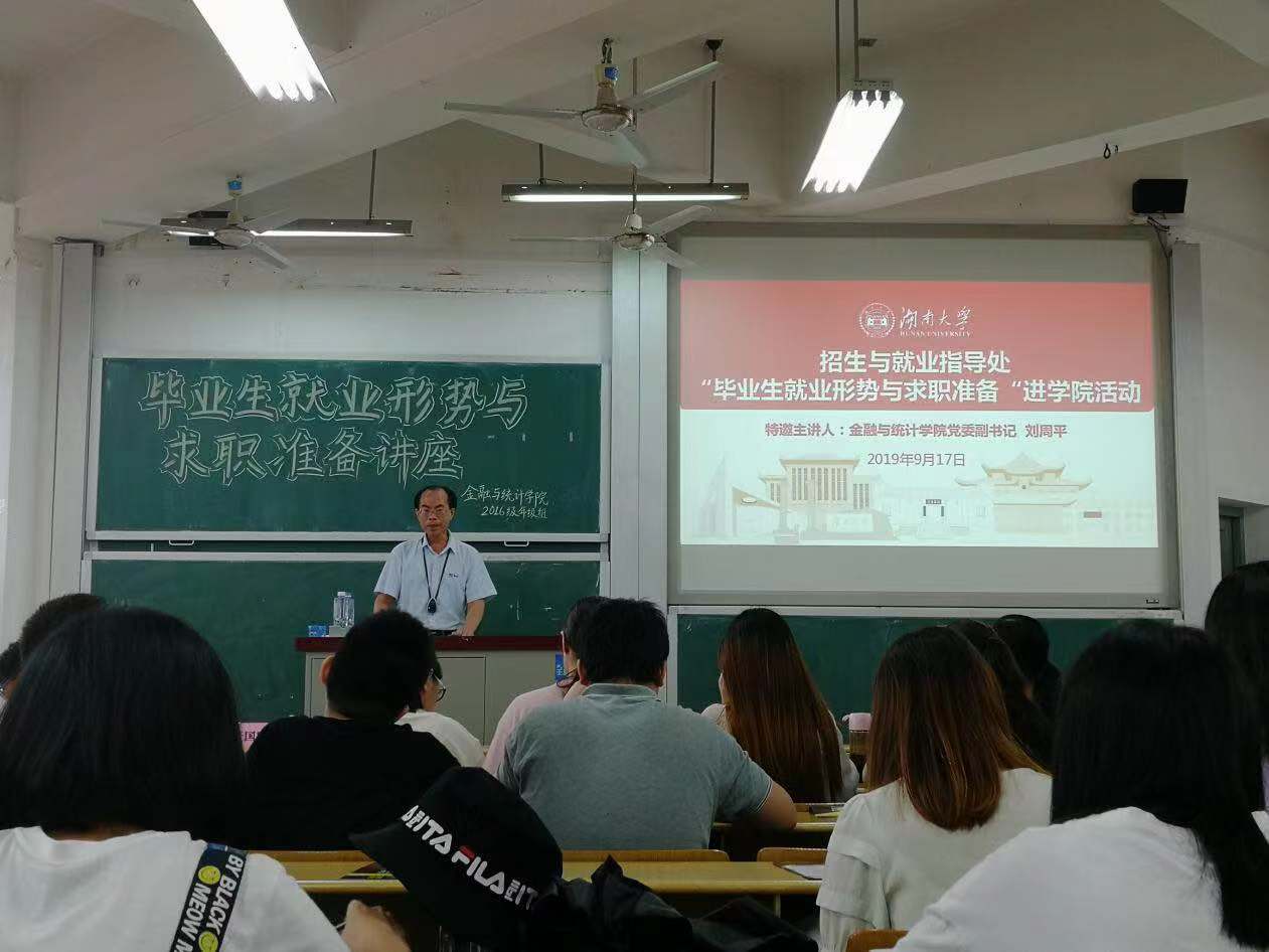 2019年9月17日,sunbet集团中国官网入口2016级年级组举办了毕业生就业形势与求职、毕业准备讲座。sunbet集团中国官网入口党委副书记刘周平主讲,2016级辅导员谢君老师以及全体2016级同学出席了此次会议。此次会议旨在为同学们提供就业形势方面的信息和求职方面的指导以及就业前的准备工作。