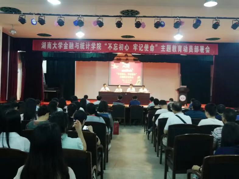 9月26日晚,sunbet集团中国官网入口召开“不忘初心、牢记使命”主题教育动员部署会,深入学习习近平总书记关于“不忘初心、牢记使命”重要讲话精神,贯彻中央、教育部党组、湖南省委及学校对主题教育的最新要求,对学院的主题教育进行全面动员以及重点部署。学校主题教育第三指导组龚翔、鲁阿庆到会指导,学院领导班子成员、全体教职工、学生党支部书记以及学生党员代表参加会议。潘敏院长主持会议。