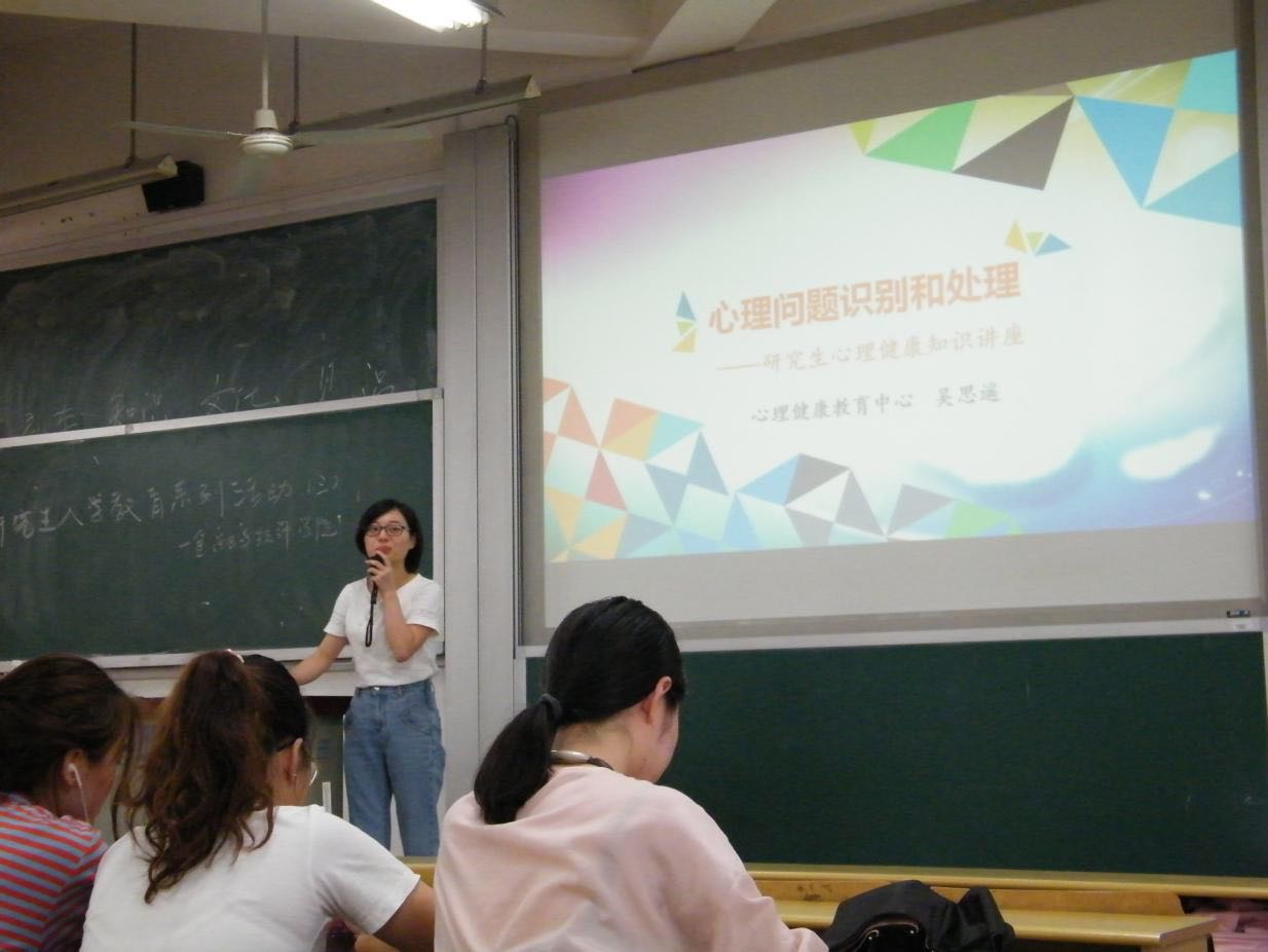 9月27号下午,sunbet集团中国官网入口2019级研究生入学教育系列活动第三场——心理健康讲座在二教502教室召开。sunbet集团中国官网入口心理健康教育中心吴思遥老师做《心理问题识别和处理》主题讲座,向同学们介绍了心理问题的类别与处理方法。