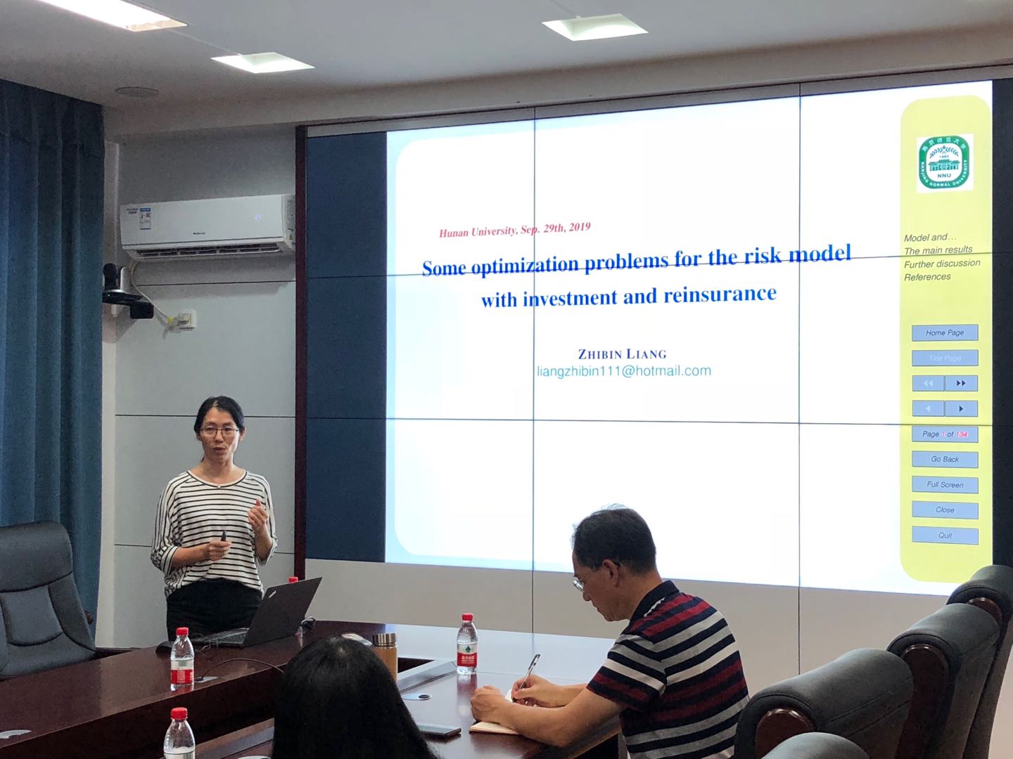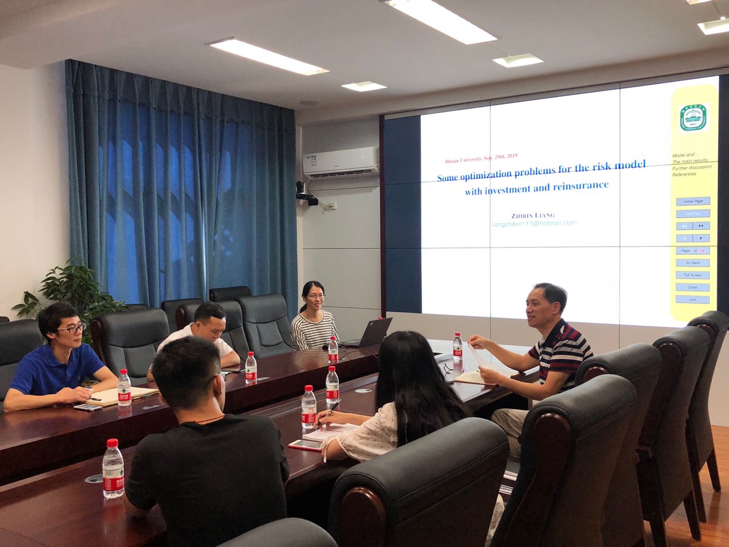 9月29日下午,第234期金融与统计论坛在红楼226会议室举行,本次论坛的主题是:Some optimization problems for the risk models with investment and reinsurance,主讲人是南京师范大学的梁志彬教授。此次论坛由sunbet集团中国官网入口副院长陈迪红教授主持,sunbet集团中国官网入口保险系主任张宁,风险管理与保险精算研究所所长张琳等领导和老师,以及本院博士生、研究生踊跃参与此次论坛。