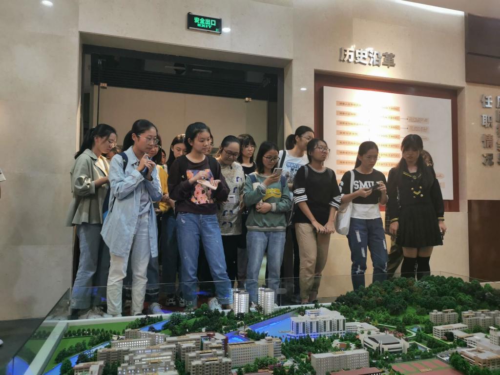 金融1906班的学生感叹:“忆昔日,苍穹下校舍低矮,风雨中道路泥泞:看今朝,蓝天下楼体巍峨,阳光中桃李芬芳。昔日济济鸿儒虽两鬓飞霜,仍丹心不改。今朝莘莘学子正意气风发,待挥斥方遒!”