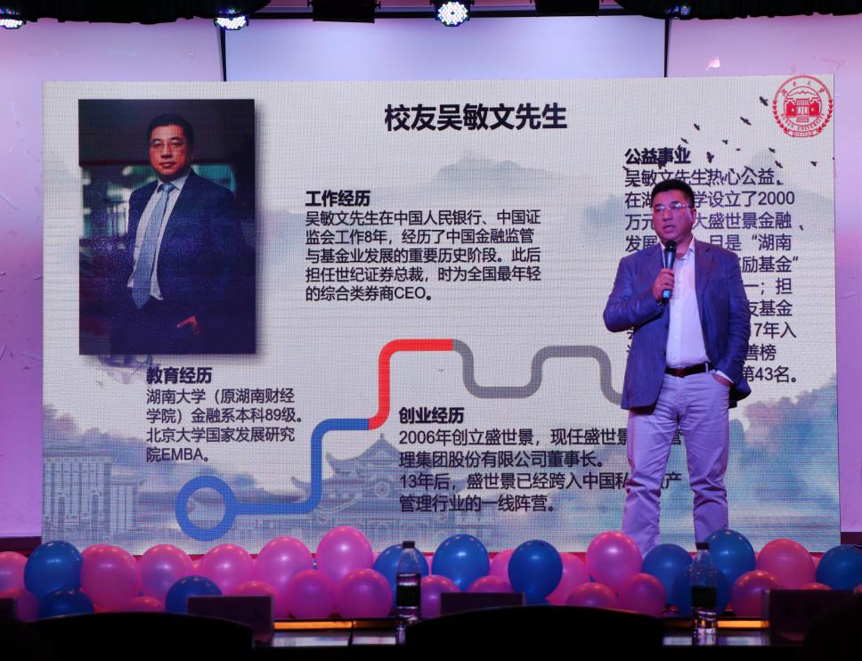 盛世景资产管理集团股份有限公司董事长、我校金融89级校友吴敏文先生每逢10月中下旬便会回到母校与大家分享自己的就业经验,吴敏文先生表示这已经成为他人生中一个不可或缺的部分和顶级烙印。在此次分享中,吴敏文先生以一贯轻松幽默、犀利深刻的风格从“国家、金融、教育、人生”四个主题词展开讲述。他首先分析了当下中国面临的国际冲击和国内形势,号召同学们心系祖国、与时俱进;接着又介绍了近年来我国资本市场和金融行业的诸多问题,启迪大家进行深思;又以大学生中存在的一些问题为出发点,呼吁同学们尊师重道,深入实践,一句“做官是为了做事”让人肃然起敬;最后,他鼓励同学们敢于创业、坦荡做人,树立舍我其谁的远大理想。在双向交流问答环节中,他以国际化的视野和亲身经历解答了同学们的疑惑,在座的师生们大有醍醐灌顶、受益良多之感。