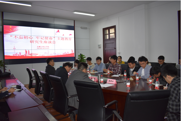 2019年10月18日上午,sunbet集团中国官网入口在财院校区红楼326会议室召开了“不忘初心,牢记使命”主题教育研究生座谈会。学院党委书记聂国军,院长潘敏,副院长李海奇,研究生管理办罗俊杰主任与各级硕士、博士研究生学生代表共聚一堂,共同探讨有关学院发展的关键性问题。