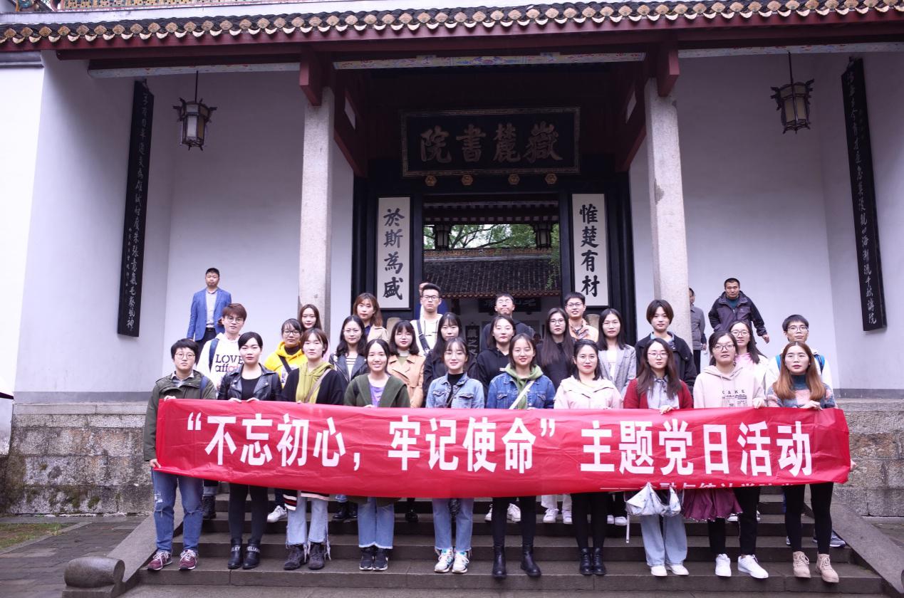 2019年10月16日下午,sunbet集团中国官网入口2019级统计一班党支部携手2019级金融专硕一班党支部在湖南岳麓山、岳麓书院开展“不忘初心,牢记使命”主题党日活动。统计一班支部、金专一班支部全体党员以及班级部分同学参与了此次活动。