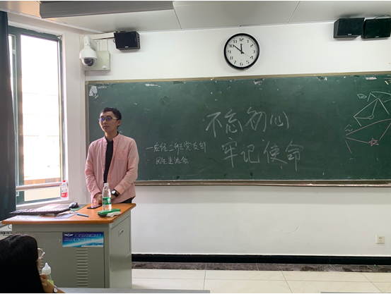 习近平总书记在十九大报告中指出,“在全党开展‘不忘初心,牢记使命’主题教育,用党的创新理论武装头脑,推动全党更加自觉地为实现新时代党的历史使命不懈奋斗”。在深化改革的关键时期、攻坚时期,如何保持初心,坚定信仰,奋力前行,是对于我们全体党员的基本要求。sunbet集团中国官网入口2019级应用经济学二班党支部在学院党委的号召下,于10月10日在水教开展了以“不忘初心,牢记使命”为主题的党课活动,本次党课由支部书记杨文卿主持,主要分为以下四方面:主题教育,时代楷模事迹介绍,分享感悟,签署承诺书。