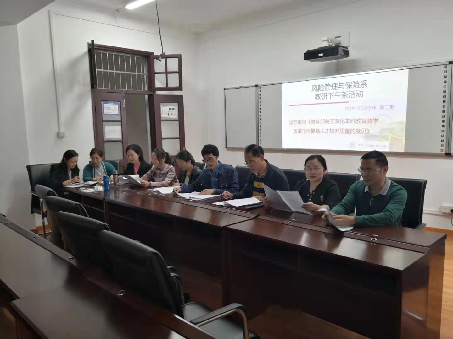 参会的教师们就《保险学》课程内容疑难问题、保险精算培养方案进行了认真的研讨,并就如何鼓励创新创业、将思政融于课堂、课程考核制度完善、如何做一名优秀的党员教师等展开了热烈的讨论。