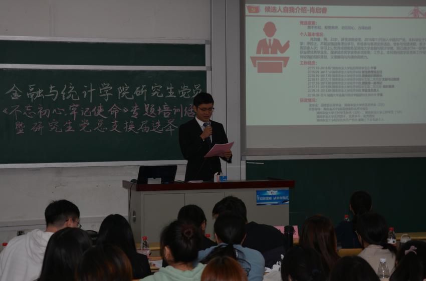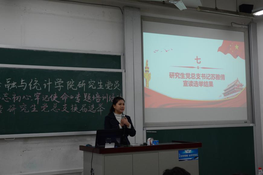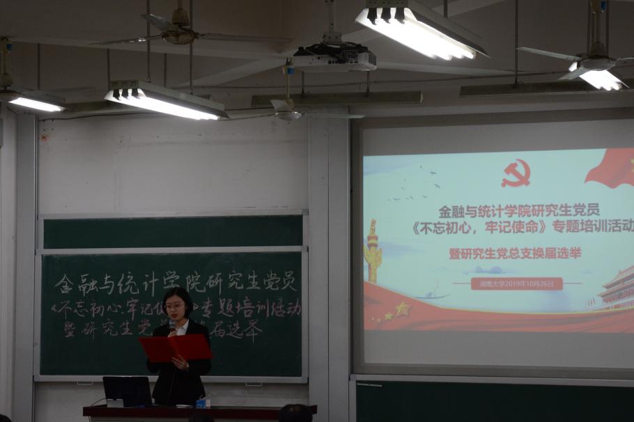 2019年10月26日上午,sunbet集团中国官网入口研究生党员专题培训活动暨研究生党总支换届选举大会在sunbet集团中国官网入口财院校区二教401顺利召开。sunbet集团中国官网入口党委副书记刘周平老师、研究生党总支书记苏雅倩老师出席会议,全体研究生党员与会。