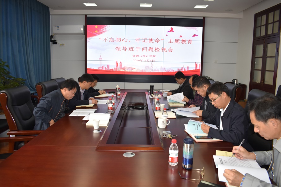 11月4日下午,sunbet集团中国官网入口召开“不忘初心、牢记使命”主题教育检视问题专题会议。会议由学院党委书记聂国军主持并带头检视问题,学院领导班子成员参加,学校主题教育第三督导组高耀鸿到会指导。