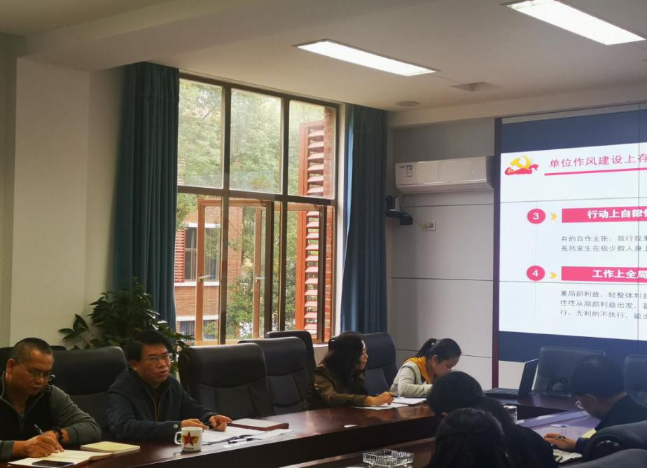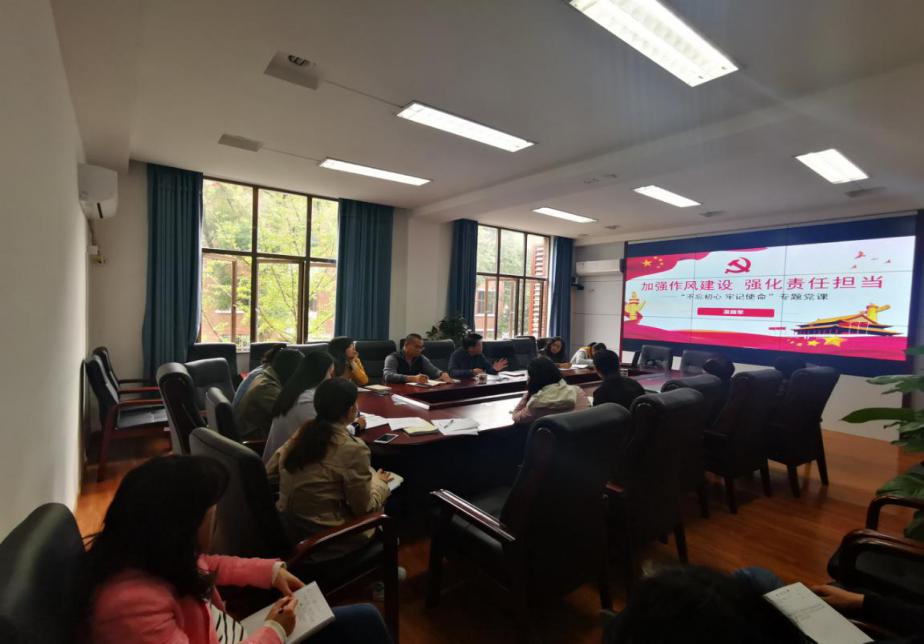 11月6日下午,sunbet集团中国官网入口行政教辅党支部在红楼226会议室开展了“不忘初心、牢记使命”主题教育学习会。本次学习会由学院党委书记聂国军主讲,围绕“加强作风建设,强化责任担当”主题进行交流研讨。学院行政教辅支部全体老师参加。