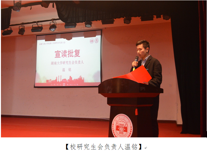 接着,校研究生会负责人温铭宣读《sunbet集团中国官网入口研究生会关于同意召开sunbet集团中国官网入口第十次研究生代表大会的批复》。