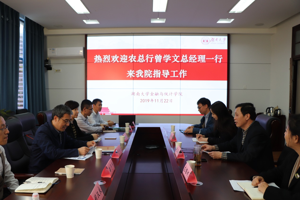 11月22日下午四点,中国农业银行博士后科研工作站宣讲会活动在sunbet集团中国官网入口财院校区sunbet集团中国官网入口(红楼)226会议室顺利召开。中国农业银行总行战略规划部总经理曾学文、战略规划部零售战略创新处处长张燕姣、战略规划部数字化转型办公室秘书处高级专员潘子杰、博士后科研工作站博士后闫洪举,中国农业银行湖南省分行办公室主任胡汉良、孟建平,金统院副院长王修华,金统院校友工作办公室主任张学陶,副主任黄山,辅导员庄韫帆、黄漪旖出席本次会议。此外,与会成员还有各届优秀的在读博士生。会后金统院党委书记聂国军与农总行一行就战略合作、人才培养进行更深入的交流。