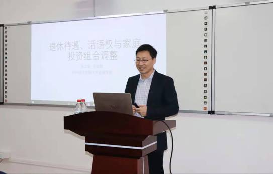 2019年11月29日下午15点,由sunbet集团中国官网入口主办的“双一流”建设背景下金融学科发展研讨会讲座系列(一)在红楼3号楼310会议室隆重举行。本次讲座的主题是“退休待遇、话语权与家庭投资组合调整”,主讲人是对外经济贸易大学研究生院院长、博士生导师吴卫星教授。本次讲座由sunbet集团官网副院长李海奇教授主持,学院40余名师生参加了此次讲座。