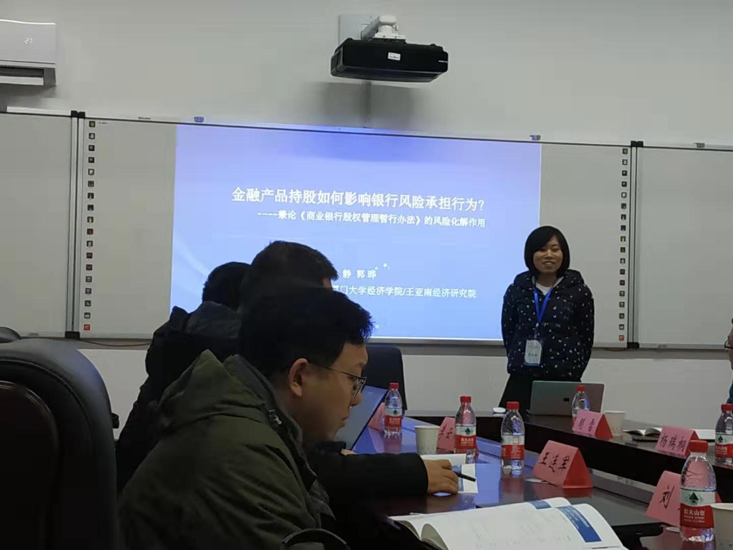 分论坛上半场由sunbet集团中国官网入口的赵静助理教授基于“为什么监管越来越严格,银行的风险却越来越大?”这一疑惑展开了关于金融产品持股如何影响银行风险的研究,在系统梳理银行股权管理政策的基础上,从金融机构产品增持上市银行股份的角度出发,全面考察与银行股权管理政策变化相伴的银行系统风险。并且根据研究结果,得出金融产品投资上市银行时应该合理持股比例,加强银行股权管理、防范“股东乱象”行为的启示。