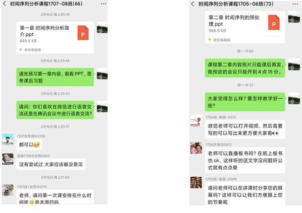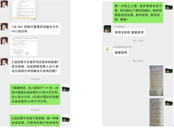 以学生为中心,做好课堂教学。2月17日,是时间序列分析的首次网上授课。为了通过互动提高课堂学习效率,谭德俊老师请同学们开启麦克风,上课期间有任何问题或疑惑,可直接线上提问,尽可能将疑惑与问题解决于课堂中。教学中,以对课程以及课程相关知识之间的逻辑联系的熟练掌握、融会贯通吸引学生,以理论联系实际、深奥的理论形象化、抽象的问题具体化、复杂的问题简单化,通过逻辑关联、条件关联、目标关联的分析培养学生分析问题解决问的能力等提高学生的学习兴趣。