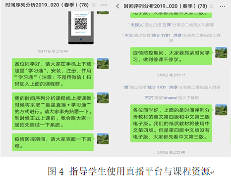 此外,为了让学生尽快适应和熟悉线上教学平台,时间序列分析课程团队老师积极与学生进行沟通,指导学生安装线上教学软件,了解学生的困难与需求,做到“让每一位学生都能参加课程,不让任何一位学生掉队”。