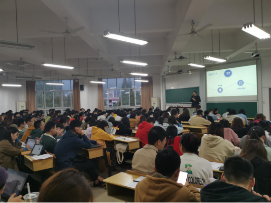此外,在二教205会场,文姹紫简要介绍了大学生可能遇到的学业压力、情感压力以及家庭压力等心理问题,讲解了抑郁症的具体表现,并提醒同学们如遇较为严重的心理问题应及时告知辅导员,在辅导员与心理中心的引导帮助下积极面对、走出阴霾。