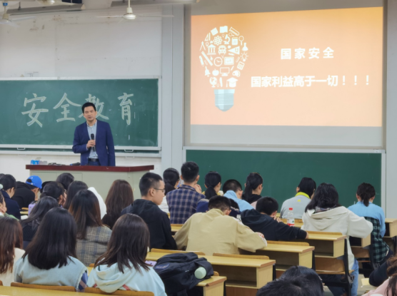 在二教502会场,朱群峰向同学们细致讲解了大学生安全的十个方面,提出了要以国家安全为重、做到“三防两反”。在讲解人身财产安全时,朱群峰结合贴近大学生生活的典型案例,温馨提示同学们不要上当受骗,并给出了避免陷入骗局的方法。沈新强围绕“卫生安全教育”这一主题,从大学生的健康知识普及及生命安全保护、各类疾病就医方式、传染病防控等方面进行了生动讲述,阐明了校医院统一评估病情的作用,纠正了同学们“生病就要去大医院”的错误认知,普及了传染病传播途径、临床表现、预防措施等相关知识,并重点讲述了新冠肺炎,建议同学们勤开窗通风、勤洗手、保证充足睡眠。