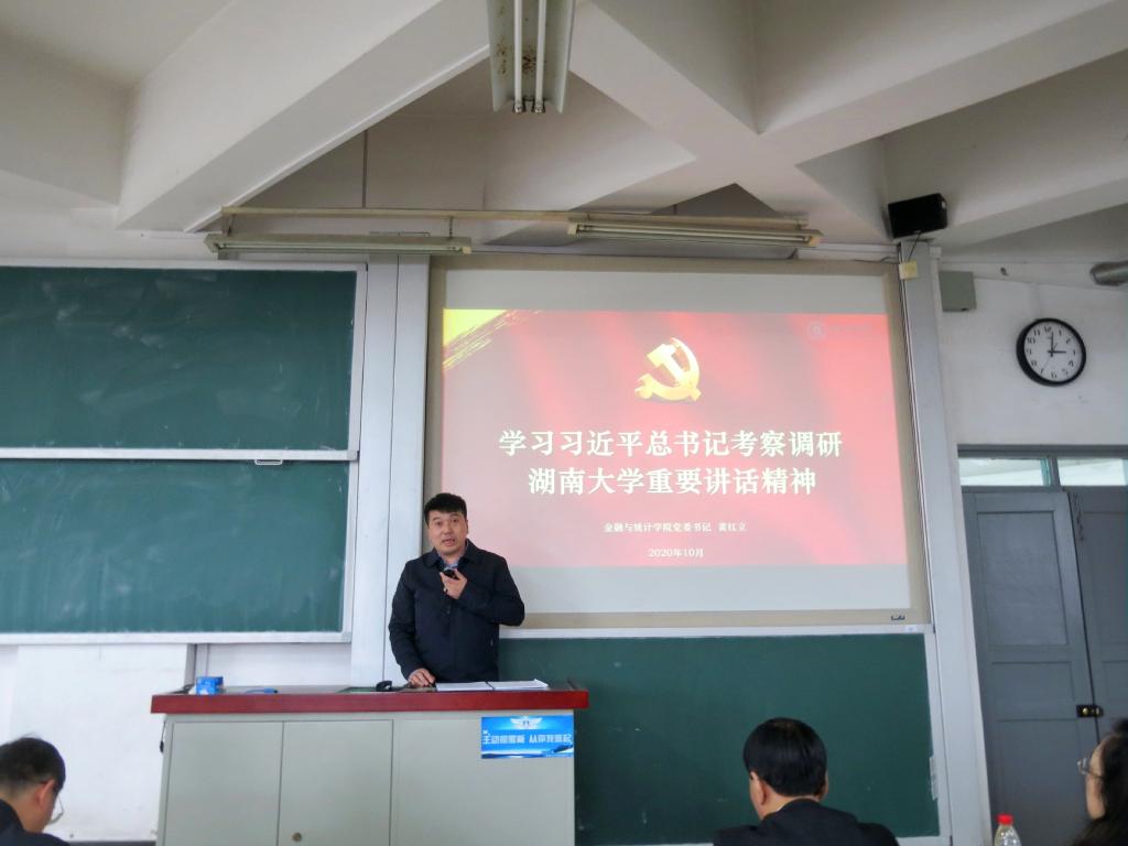 黄红立书记带领大家重温了习近平总书记在sunbet集团中国官网入口发表的重要讲话,并结合习近平总书记的重要论述、重要指示及我校在践行这些重要讲话精神时的具体做法及典型案例,从“加强高校思想政治工作,推动思政课改革创新”“传承弘扬优秀历史文化,坚定文化自信”“不负青春不负重托,接好时代事业的接力棒”“践行经世致用、实事求是的湖湘精神”等四个方面带领学院师生进行了深入学习。习近平总书记考察sunbet集团中国官网入口岳麓书院的重要讲话体现了他对sunbet集团中国官网入口在传承中华传统文化方面成就的肯定,并为青年大学生发奋学习、勇担使命、报效祖国指明了方向。