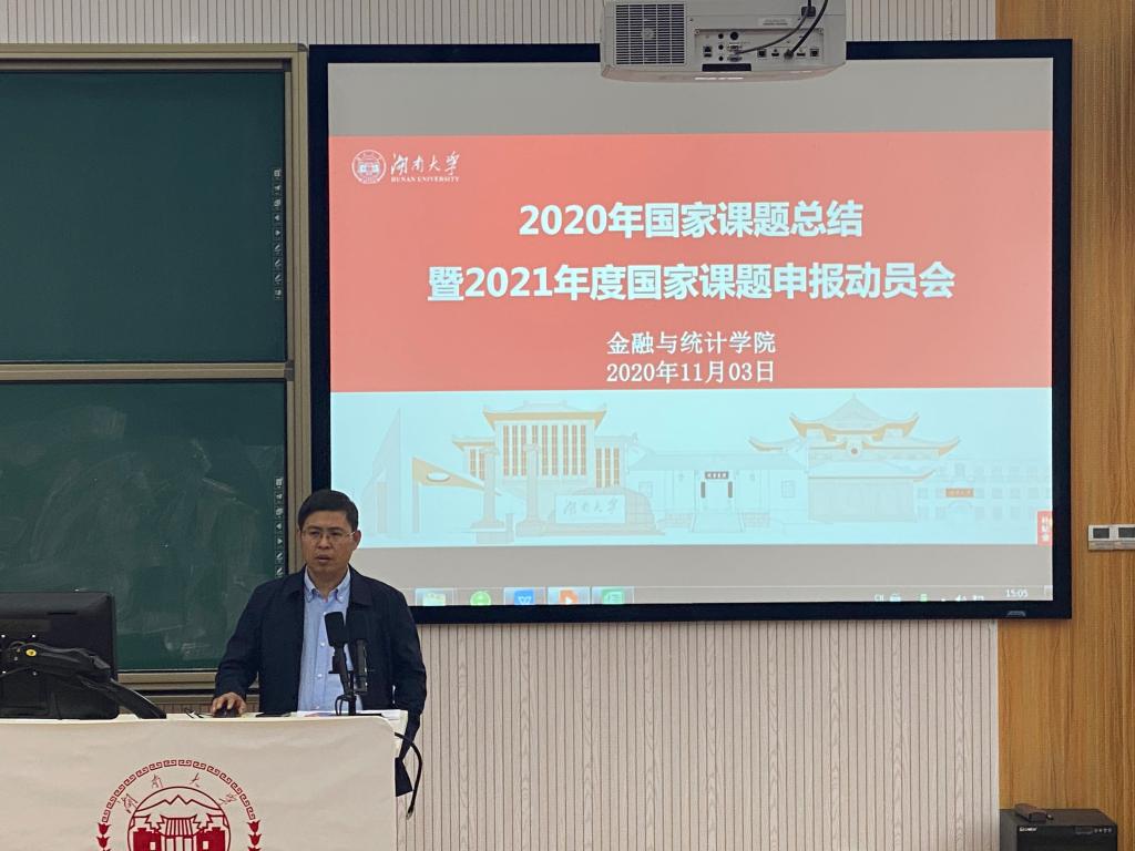 2020年11月03日下午,在财院校区二教101会议室,召开了sunbet集团中国官网入口2020年国家课题总结暨2021年度国家课题申报动员会。会议由王修华副院长主持,潘敏院长、吴志明副院长以及学院教师70余人参加了会议。