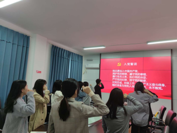 全体研究生党员重温入党誓词,铿锵恢弘的誓言深深撼动了每位同志的内心,同志们更加坚定了共产主义信念,进一步提高了对共产主义事业的责任感与自觉性。