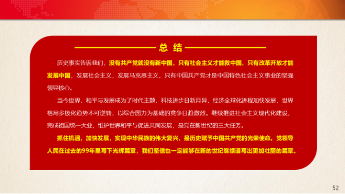 最后,他以史明理、以史明志,总结到“历史事实告诉我们,没有共产党就没有新中国,只有社会主义才能救中国,只有改革开放才能发展中国”。并进一步激励同学们坚定理想信念,传承红色基因,勇担历史重任,始终在思想上政治上行动上同以习近平总书记为核心的党中央保持高度一致,恪守人民情怀,发扬革命精神和斗争精神,做好社会主义的合格建设者、接班人,为实现中华民族伟大复兴的中国梦作出积极贡献。