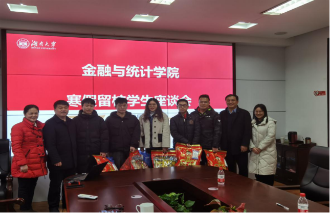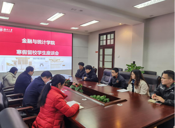 2021年2月5日上午,sunbet集团中国官网入口在院楼226会议室召开寒假留校学生座谈会,学院党委书记黄红立、副书记颜李、学工办主任谢君、辅导员宋烨和5名寒假留校的学生参加座谈。