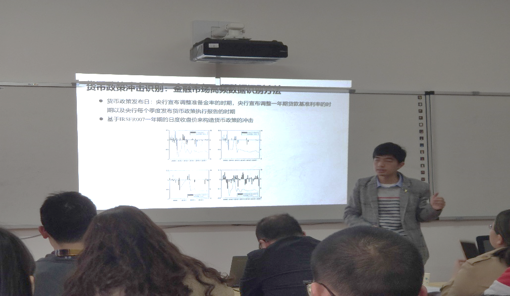 紧接着,中山大学国际金融学院李力老师作题为《我国货币政策传导效率与信号渠道检验》的演讲。货币政策传导效率一直是备受关注的话题,李力老师指出目前货币政策实证研究的难点是内生性问题及货币政策的信息摩擦问题,他在识别货币政策工具对应的货币政策冲击后剥离其中的信号效应,构造货币政策外生冲击的工具变量,极大程度地解决了货币政策冲击的内生性问题。同时从企业融资角度讨论了货币政策的传导渠道。