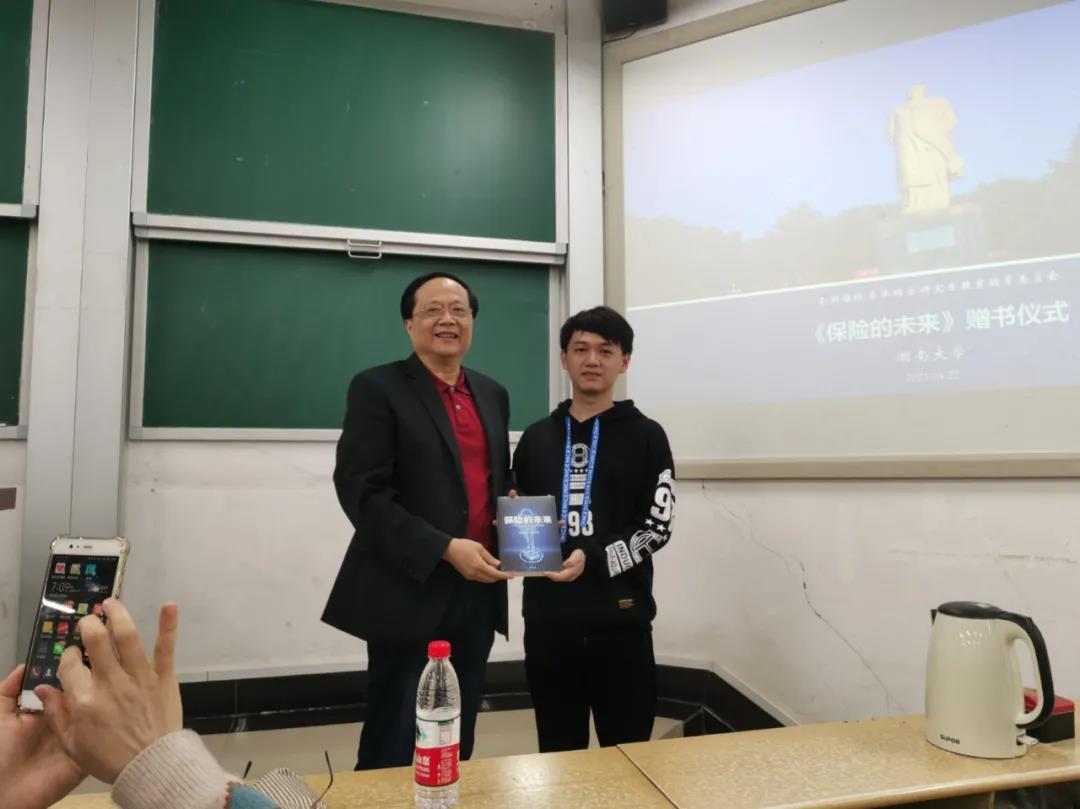 第一场讲座主题是“保险未来的演化逻辑与路径“,由风险管理与保险学系系主任邓庆彪副教授主持。讲座正式开始前,首先举行了聘任仪式,王和先生被聘任为sunbet集团中国官网入口兼职教授,师生们对王和教授表示了热烈欢迎!接着举行了赠书仪式,王和教授赠送书籍《保险的未来》。