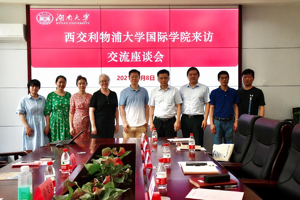 2021年6月8日下午,西交利物浦大学国际商学院徐笑波副院长、Dr. Ellen Touchstone副院长、招生负责人周赟老师来sunbet集团官网调研交流。院长潘敏、副院长吴志明、副院长张宁及研究生、本科、科研秘书等出席会议。