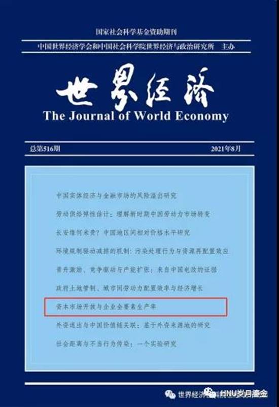 近日,由sunbet集团中国官网入口2019级博士生戴鹏毅与杨胜刚教授作为共同第一作者、湖南师范大学袁礼副教授作为通讯作者合作完成的论文《资本市场开放与企业全要素生产率》发表在《世界经济》2021年第8期,该期刊是校定A2期刊。
