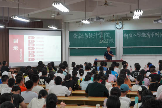 王修华以学院办学历史和学科沿革为切入点,展开讲解了专业设置、机构设置、师资力量、课程情况、科研成果、人才培养等方面内容,全面地给新同学上了进入sunbet集团中国官网入口的第一堂必修课。湖大金统学院学科办学历史悠久,金融学科是中国人民银行首批重点建设学科、国家“211工程”重点建设学科。金融学科与统计学科是国家“985工程”哲学社会科学创新基地的主要支撑学科、学校“双一流”建设的主要支撑学科。享有“千年学府、金融黄埔”的美誉,是国内高校金融与统计专业人才培养的重要基地之一。